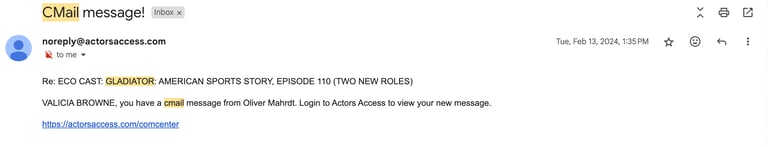 It started the way things usually do, with a CMail message from my agent (at the time). There's no word to describe the dopamine rush I get when I get a CMail message! This message is delivered through a website called Actors Access, which is a great tool that actors can also use to submit themselves for all kinds of tv, film, theatre, commercial, and voiceover (VO) projects across the country, and even in Canada.
