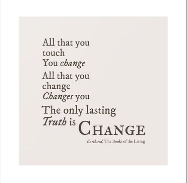 This book changed my life, especially in how I view change itself. As a Scorpio and a fixed sign, change (especially the kind outside my control) has always been terrifying. But that is life. My favorite quote from the book is about Change. Change is how we know we’re still alive. Change is the only thing we can rely on. The only true constant in this life is that nothing stays the same. I imagine how much I would complain if I lived the same day everyday i.e. Russian Doll. New people are born every day. People die every day. That is Change. And even God, the ultimate constant, is Change.